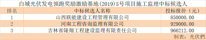 10月18日,吉林省白城光伏发电领跑者奖励激励基地(2019年)5号项目EPC工程总承包、施工监理中标候选人公示。