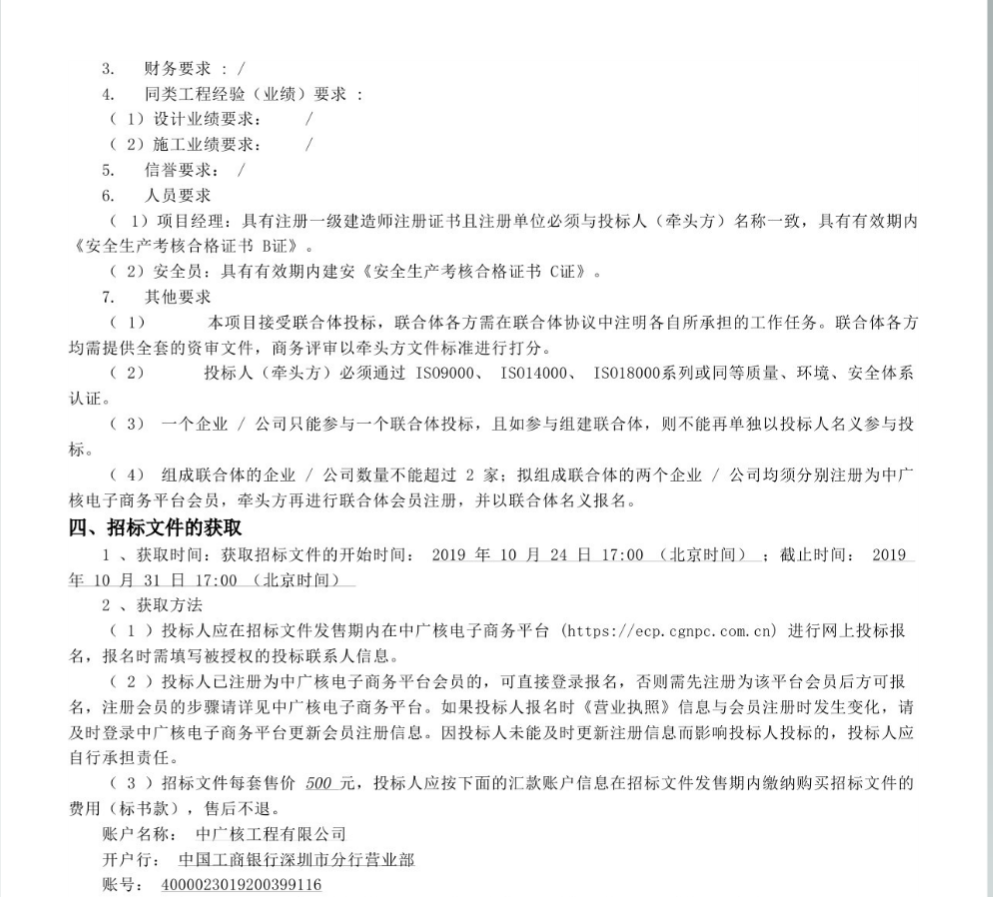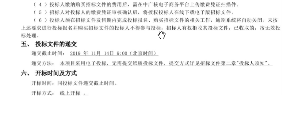 本次投标接受联合体投标,组成联合体的企业/公司数量不能超过2家。招标文件获取时间截至2019年10月30日17:00,投标文件递交时间截至2019年11月13日9:00(北京时间)。