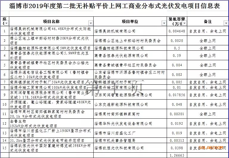 近日,山东淄博市发改委公示2019年度第二批光伏平价上网项目名单,据公告显示,本次最终确定了15个平价项目,共计1.26663万千瓦,均为分布式光伏项目,包括全额上网和自发自用、余电上网两种模式。