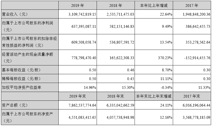 4月24日,晶盛机电发布2019年年度报告。2019年晶盛机电实现营收31.10亿元,同比增长22.64%;实现归属于上市公司股东的净利润6.37亿元,同比增长9.49%。