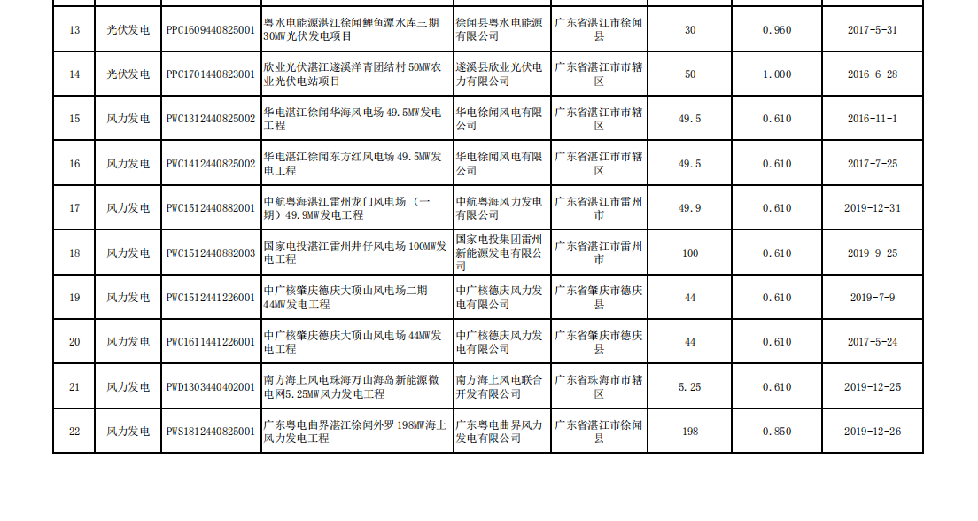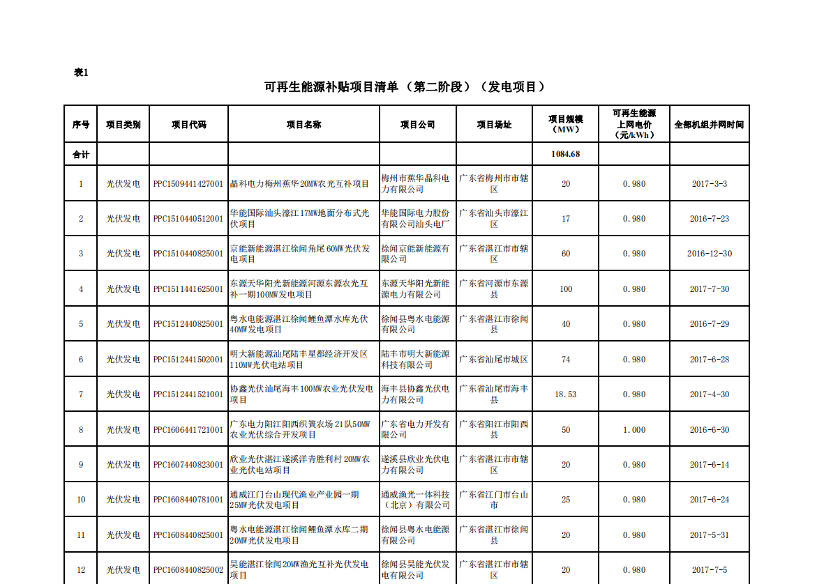 根据国家能源局《关于可再生能源发电补贴项目清单申报与审核工作有关要求的公告》等文件相关要求,经电网公司初审、省级能源主管部门确认、国家可再生能源信息管理中心复核,现将广东电网公司属地区域内拟纳入2020年可再生能源补贴项目清单(第二阶段)予以公示(详见附件)。