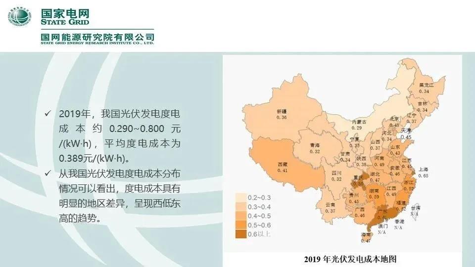 《报告》指出,2019年我国太阳能发电继续保持稳步增长,分布式光伏发电累计装机容量突破6000万kW。2019年我国光伏发电度电成本约0.29-0.80元/kW.h,度电成本呈现西低东高的趋势。预计2020年,我国光伏度电成本为0.245-0.512元/kW.h。到2025年,度电成本在0.22-0.462元/kW.h。