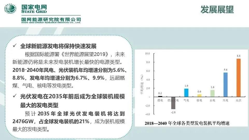 对于国内外新能源发展展望,《报告》预计2035年全球光伏发电装机将达到2476GW,占全球发电装机的21%,成为装机规模最大的发电类型。