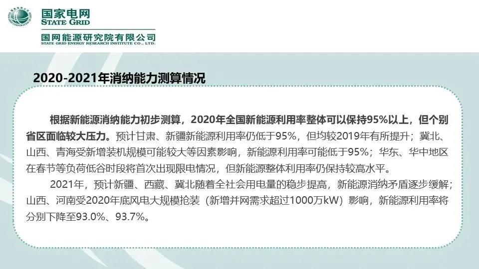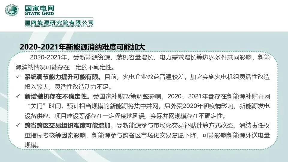 2020-2021年,受新能源资源、装机容量增长、电力需求增长等边界条件共同影响,新能源消纳情况可能存在一定的不确定性。