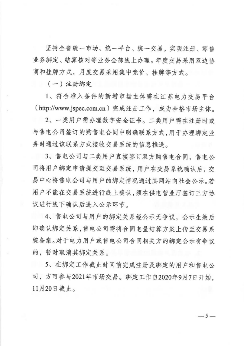 2020年9月3日,江苏省发展和改革委员会、国家能源局江苏监管办公室联合发布了关于开展2021年电力市场交易的通知。