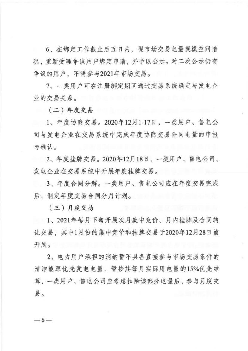 此外,《通知》在月度交易一项指出,电力用户承担的消纳暂不具备直接参与市场交易条件的清洁能源优先发电电量,暂按其每月实际用电量的15%优先结算,一类用户、售电公司应考虑扣除该部分电量后,参与月度交易。