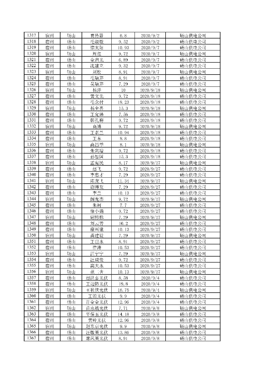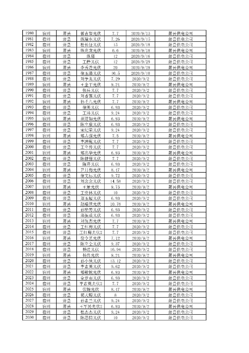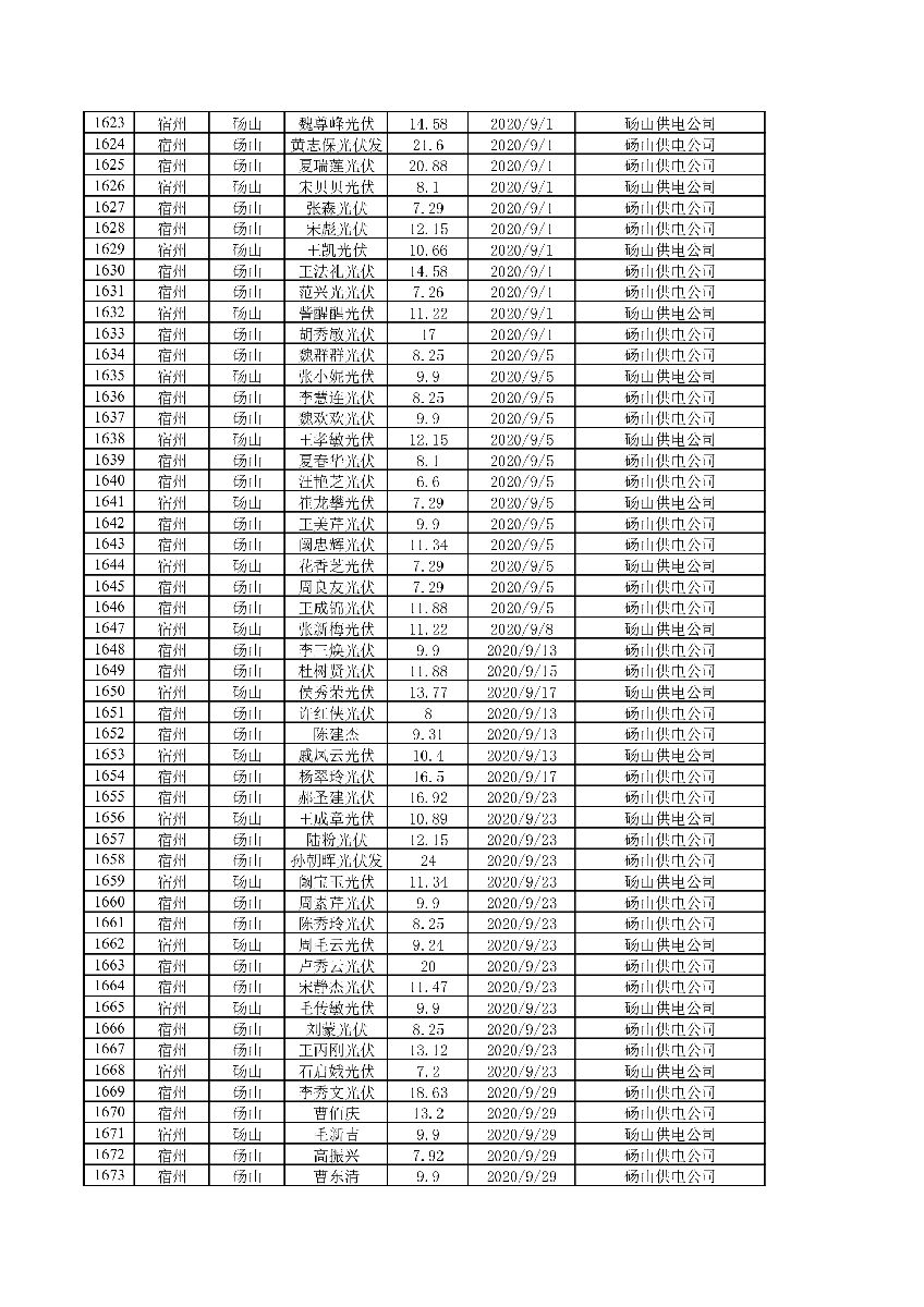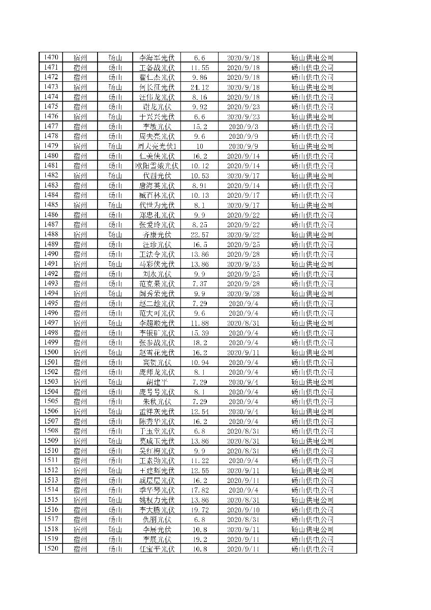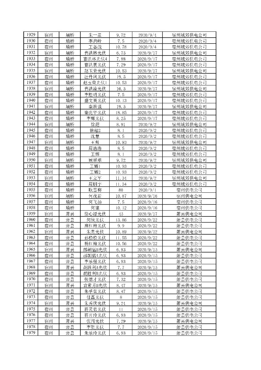 安徽省9月纳入2020年国家财政补贴规模户用光伏项目名单如下所示: