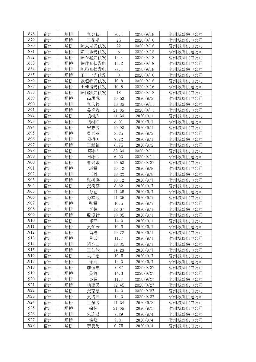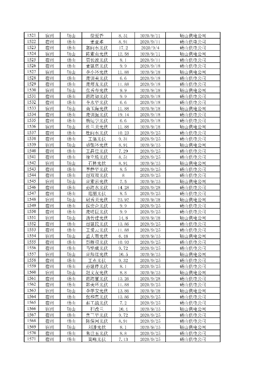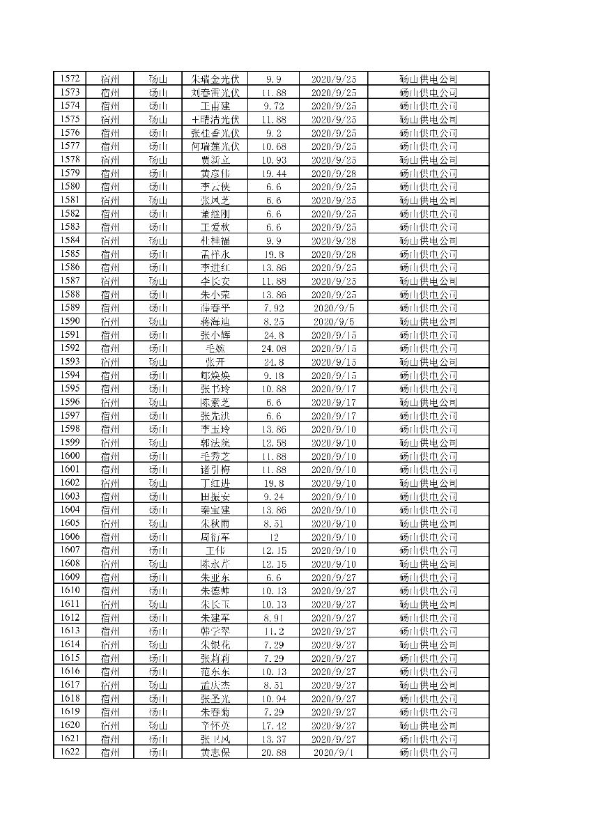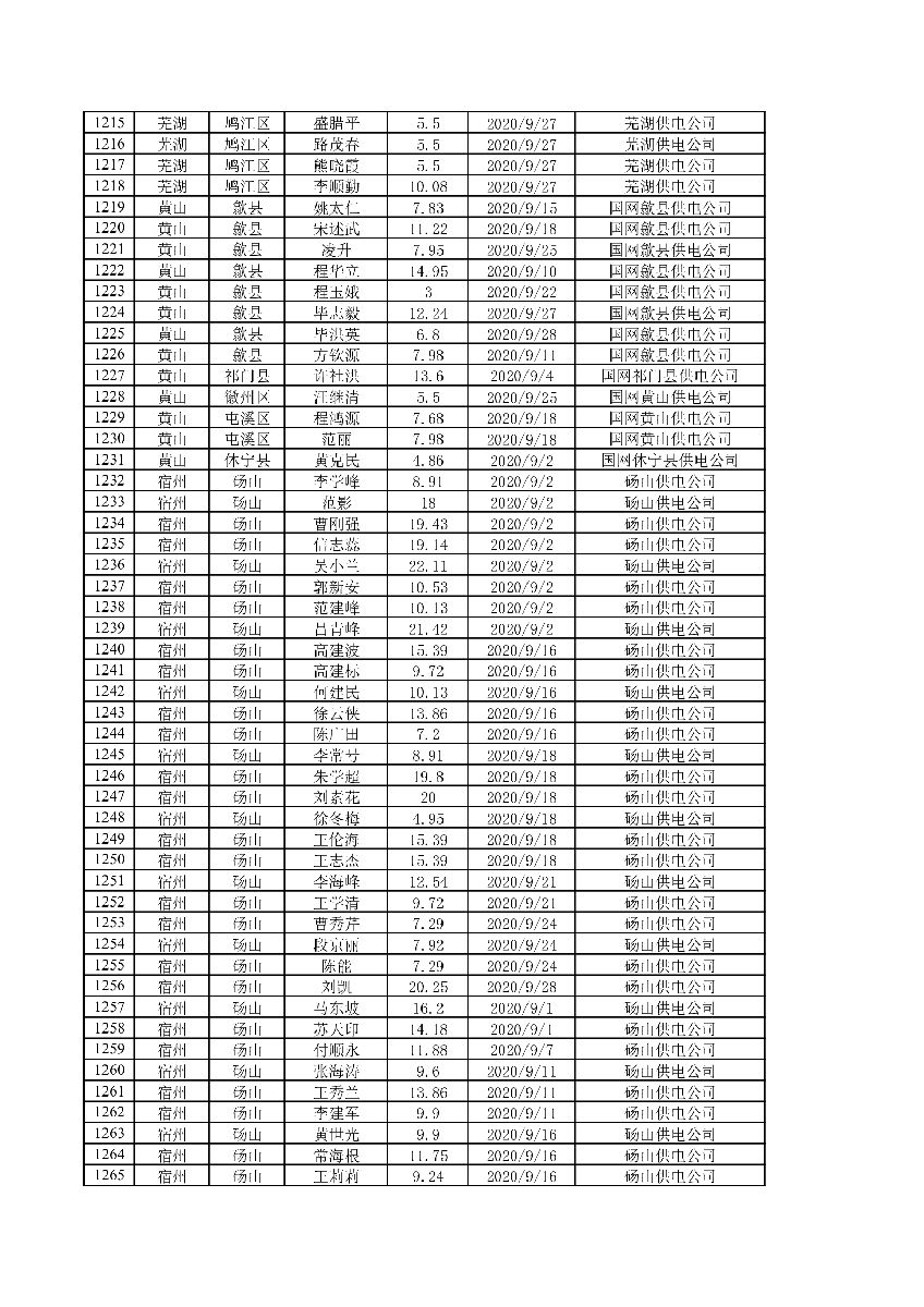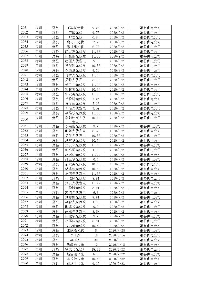 安徽省9月纳入2020年国家财政补贴规模户用光伏项目名单如下所示: