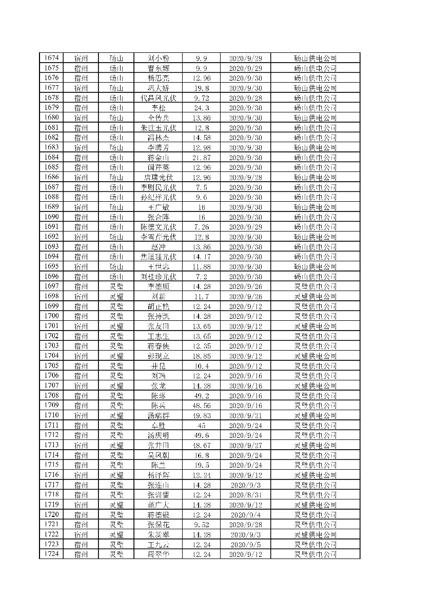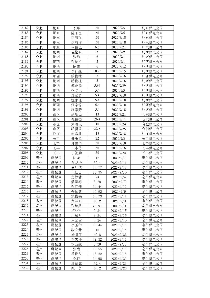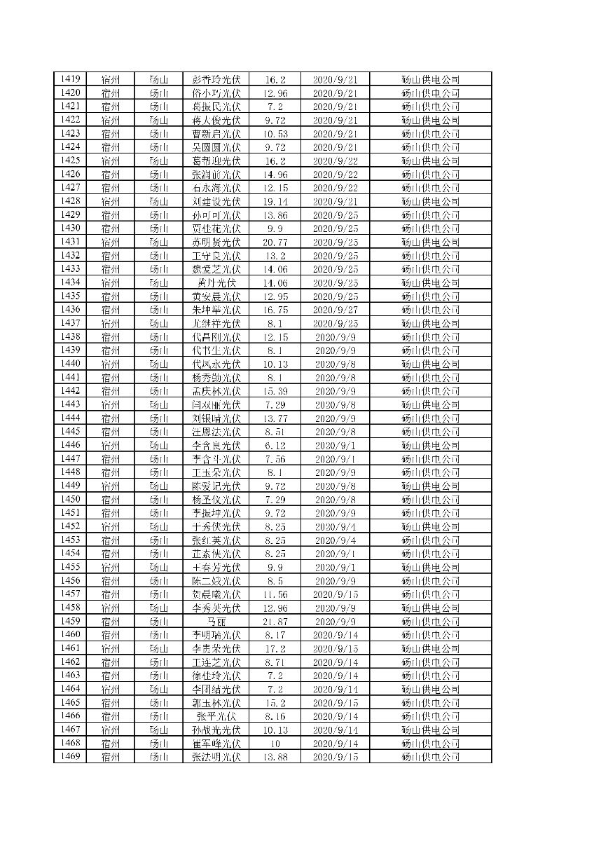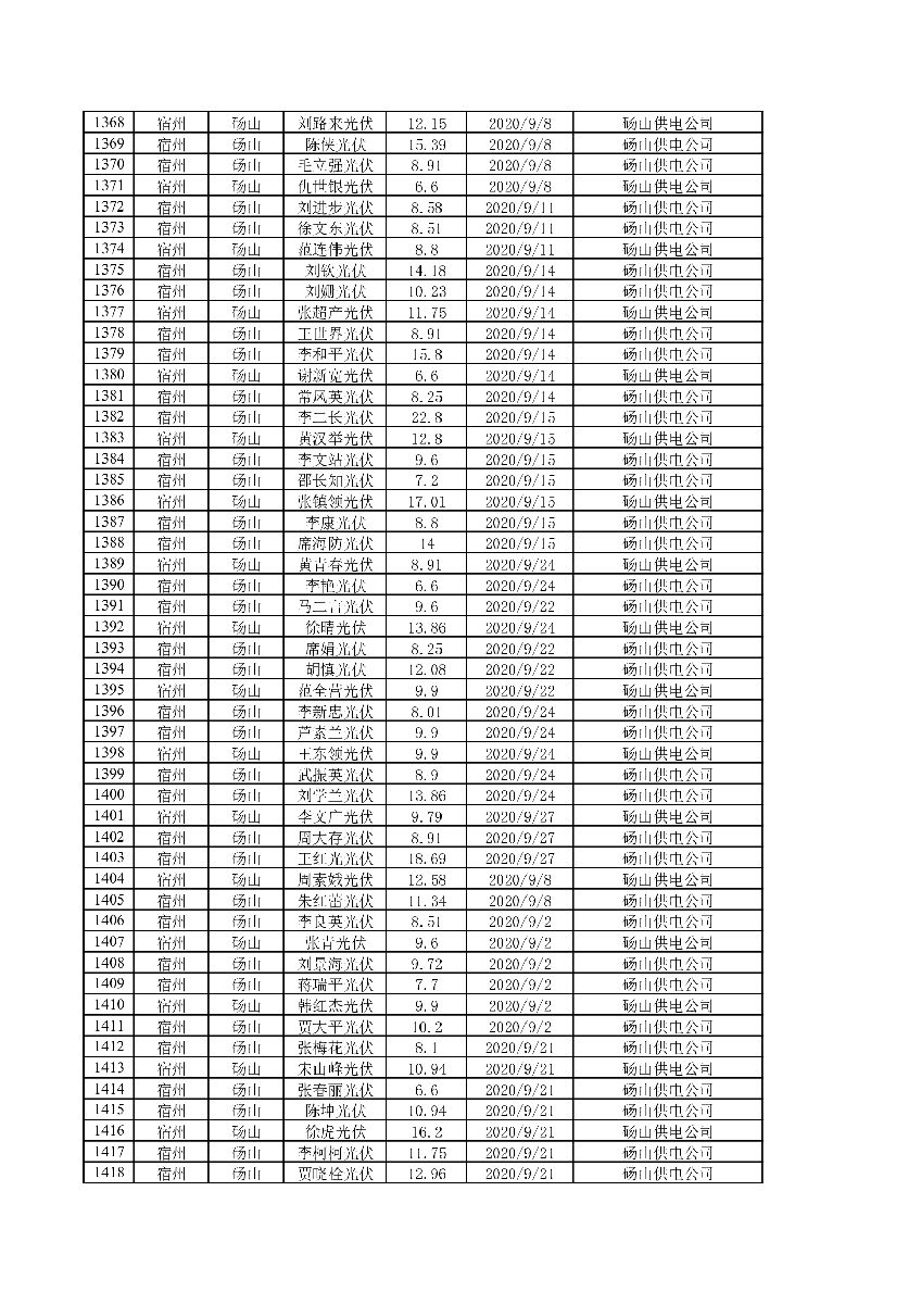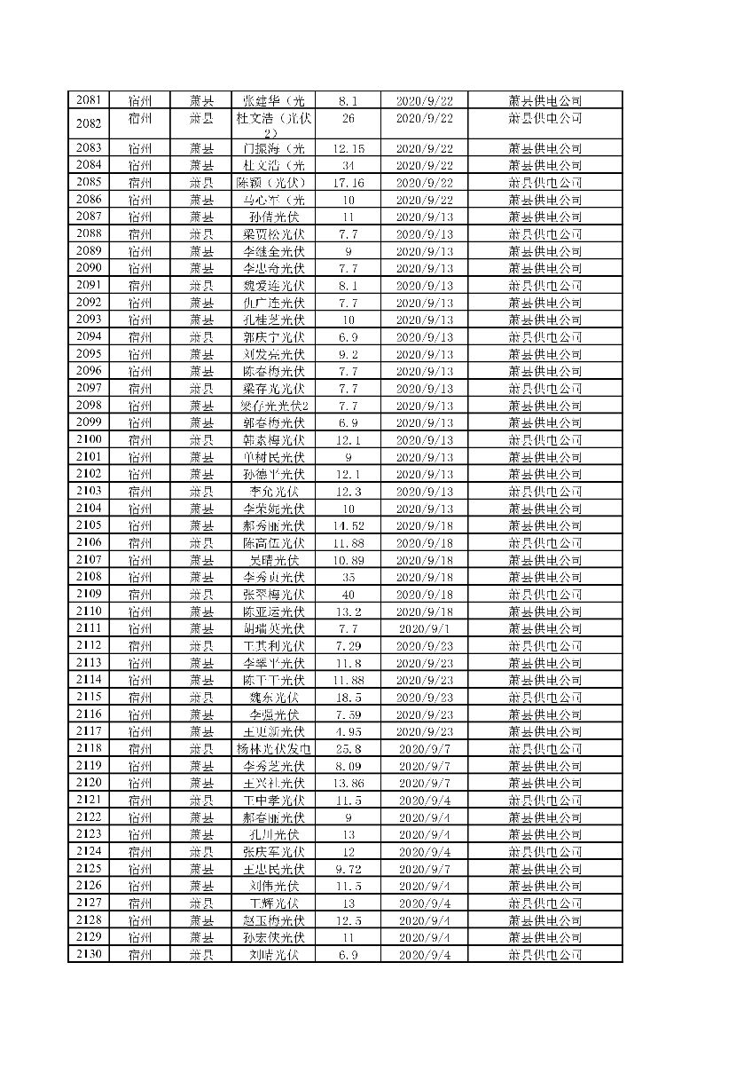 安徽省9月纳入2020年国家财政补贴规模户用光伏项目名单如下所示: