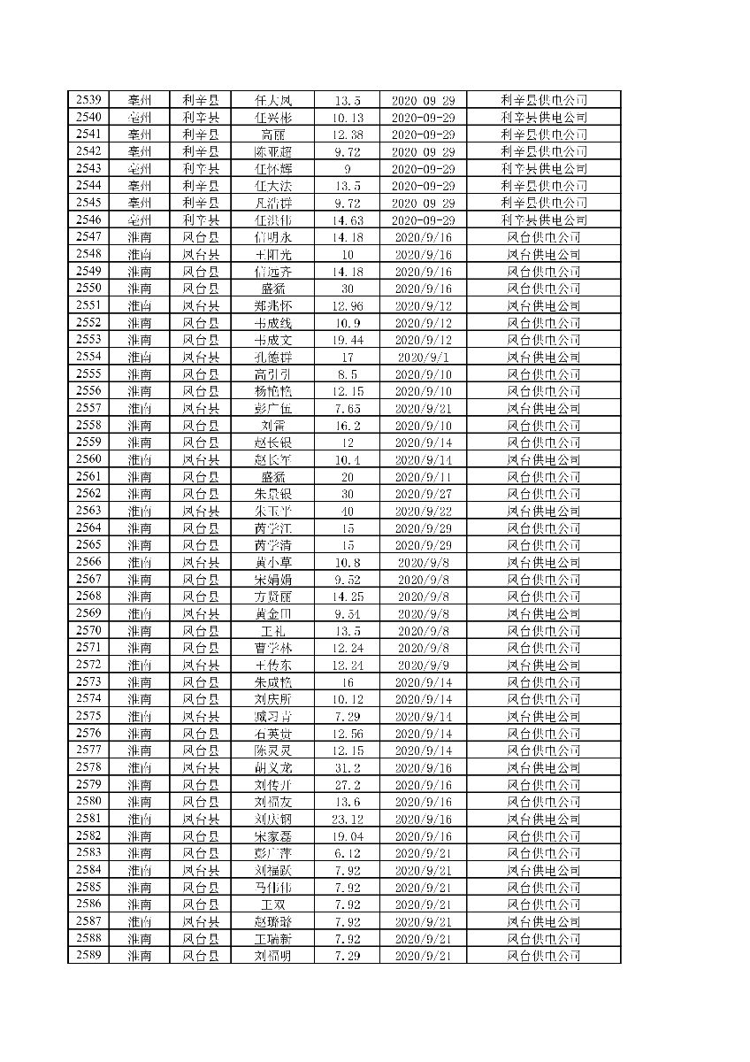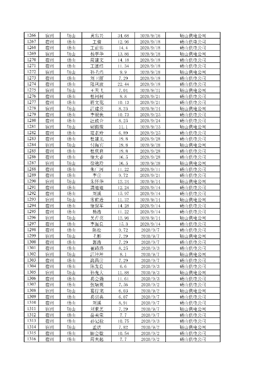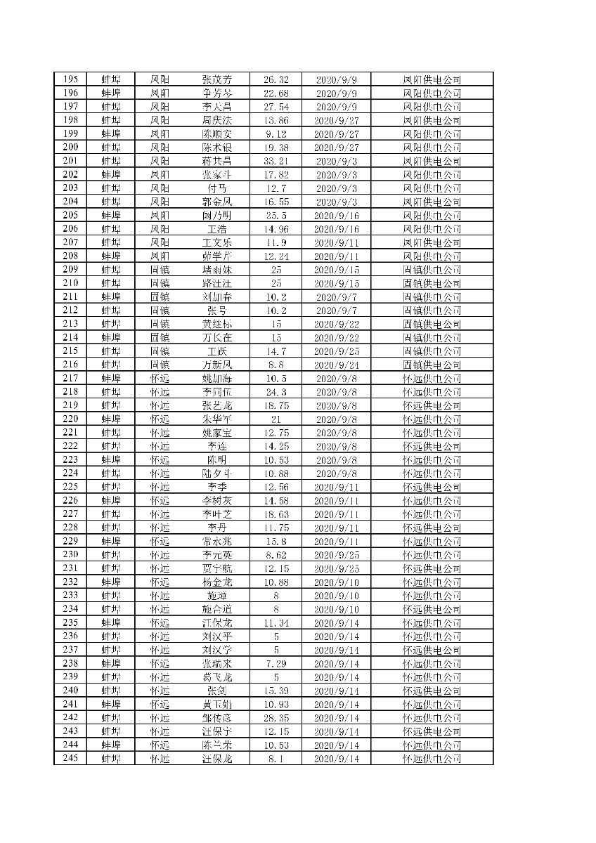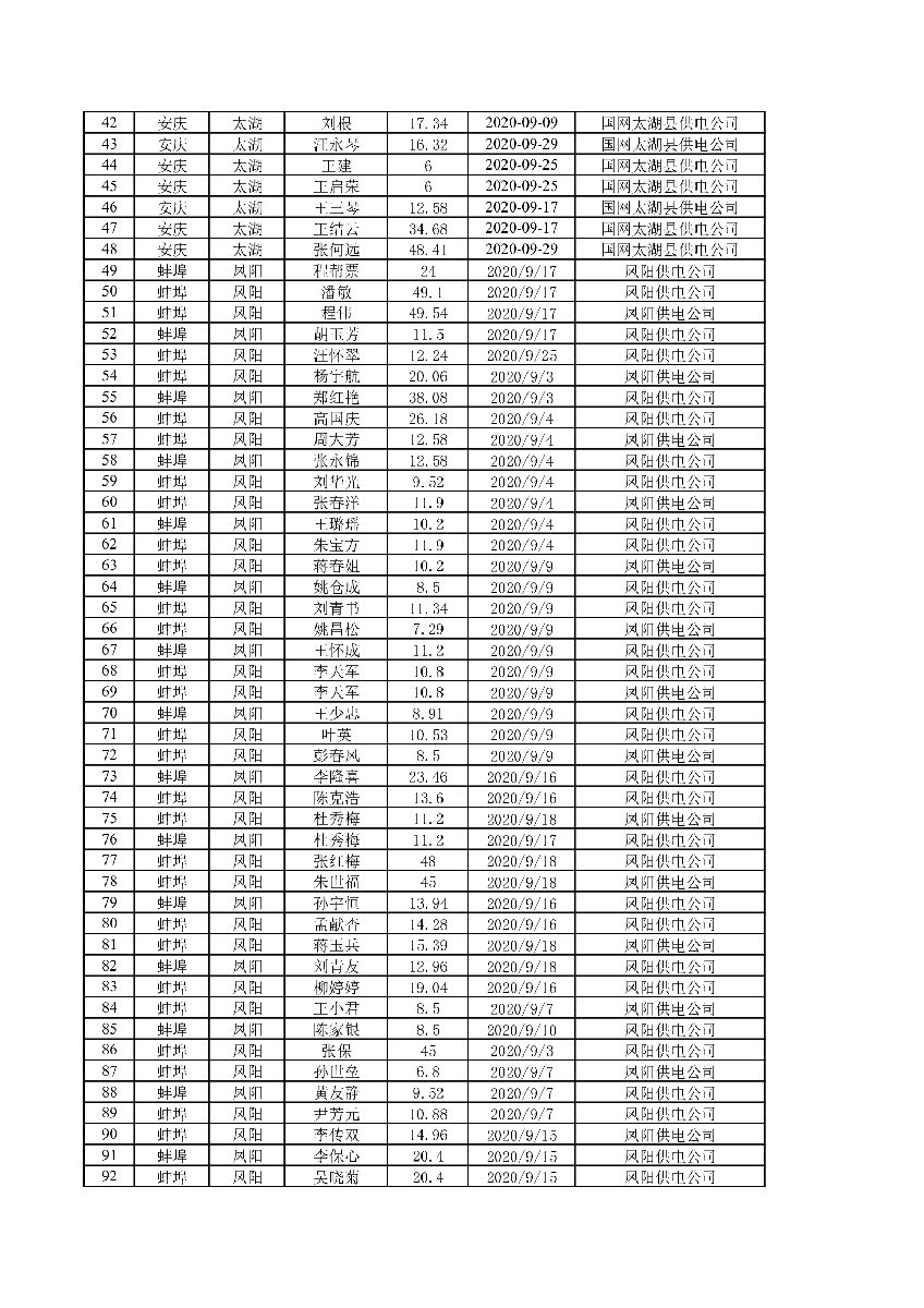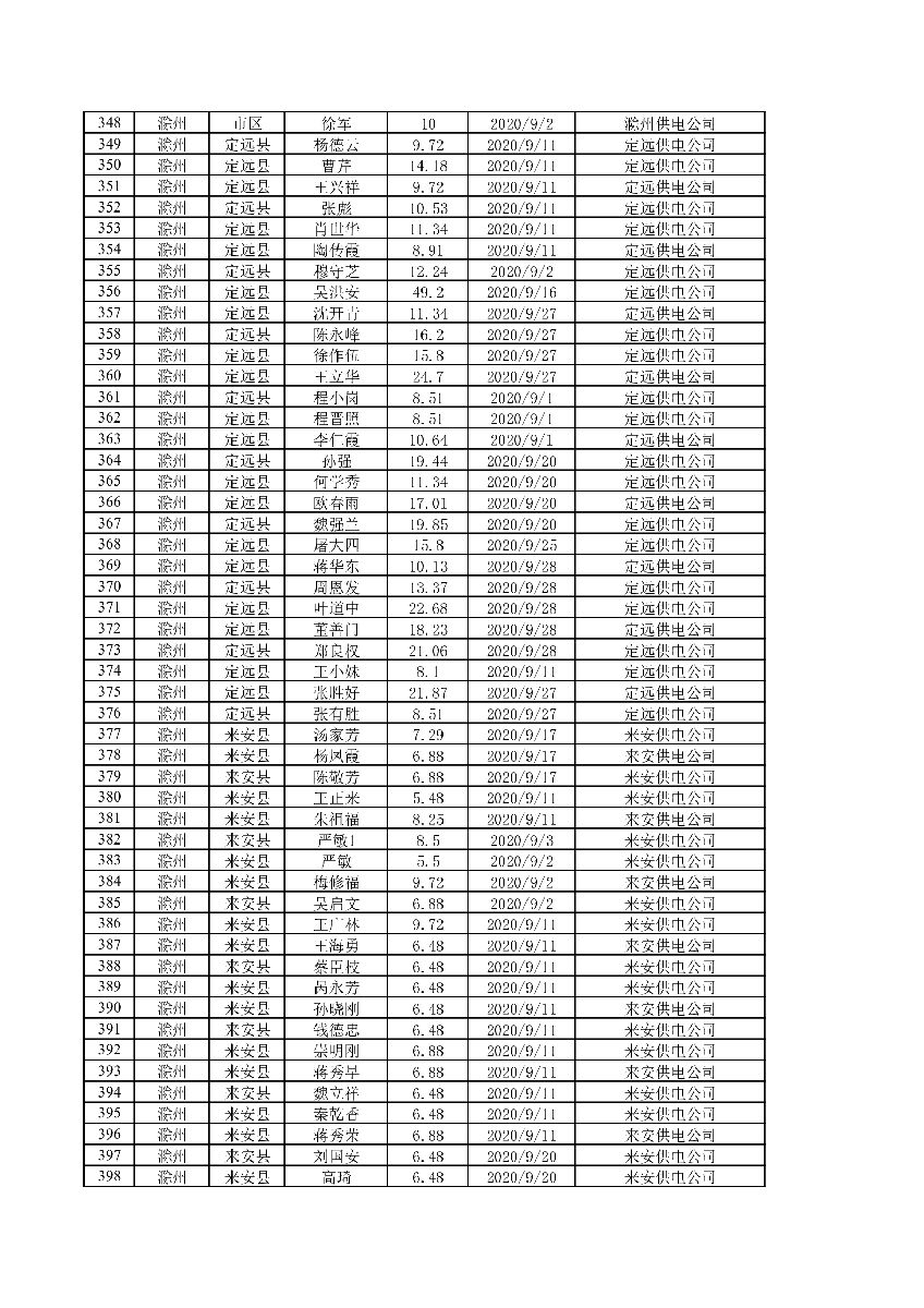 安徽省9月纳入2020年国家财政补贴规模户用光伏项目名单如下所示: