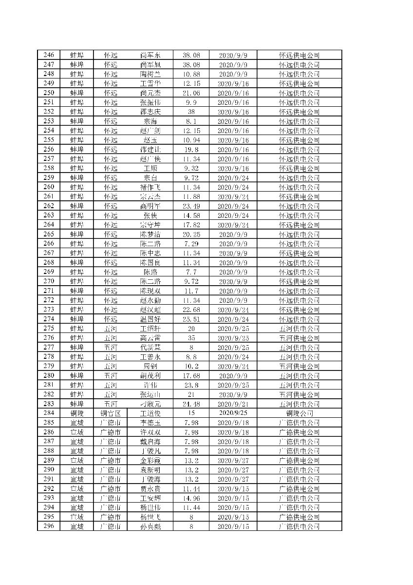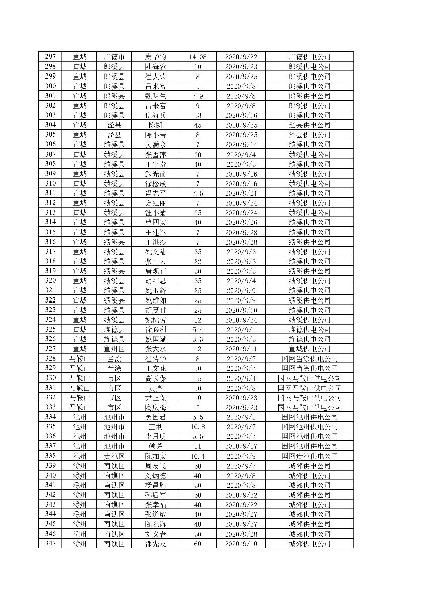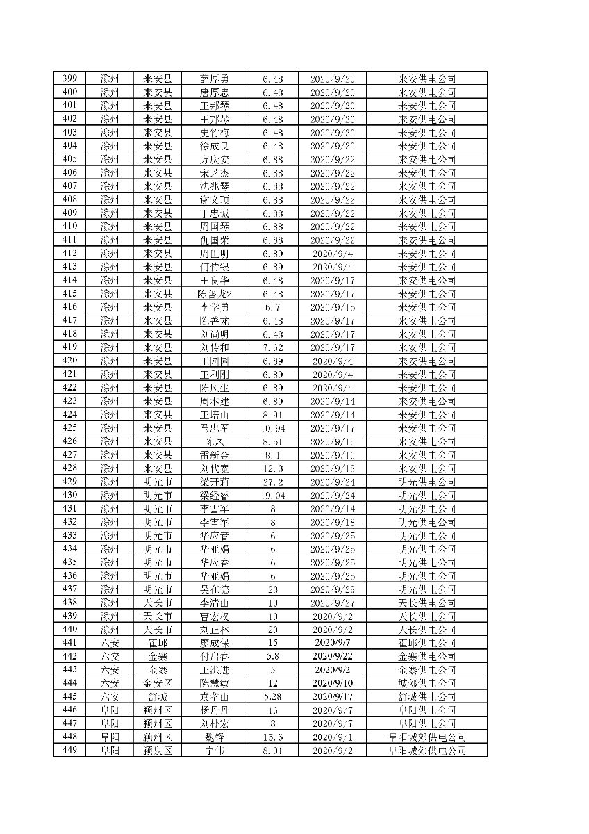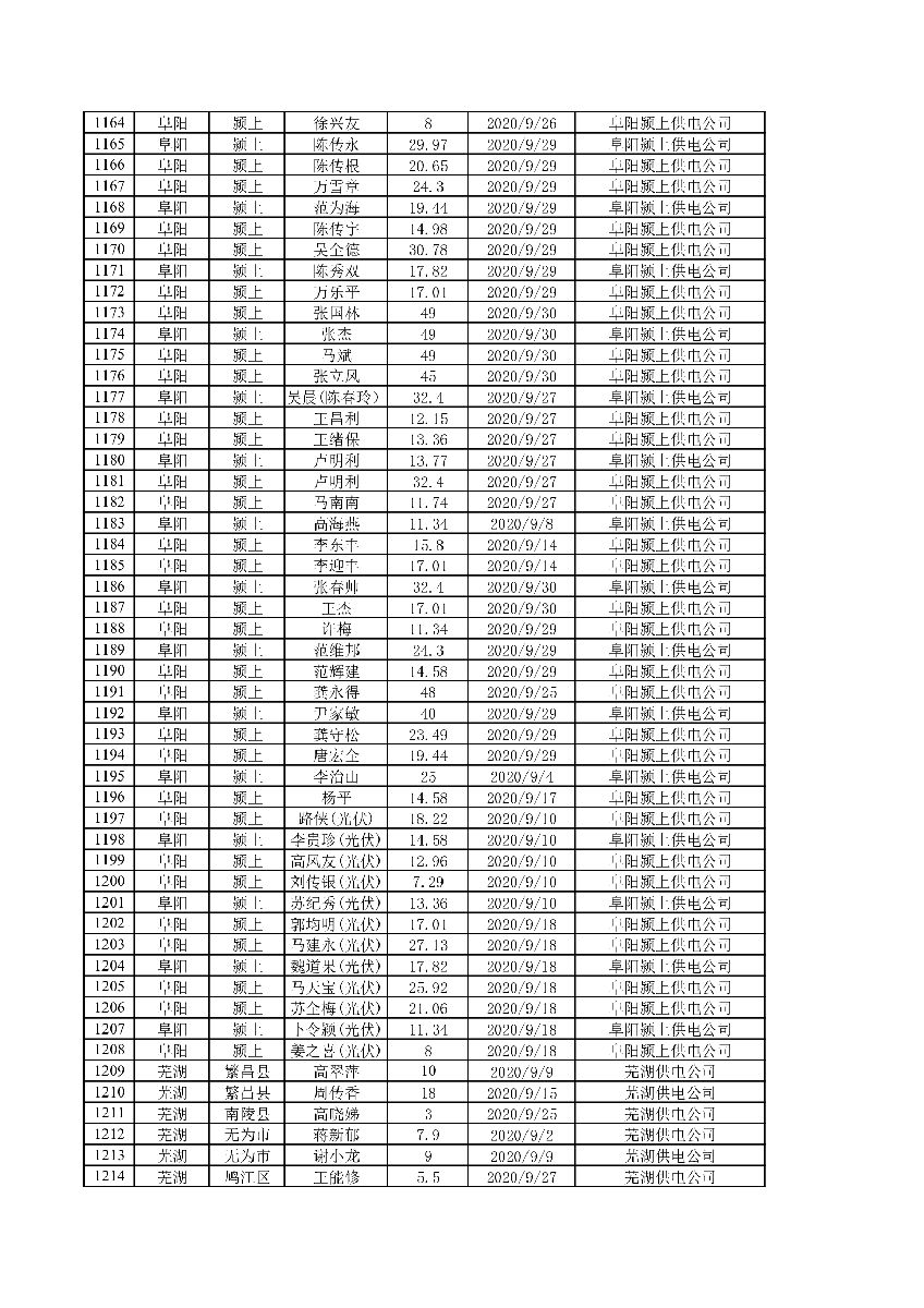 2020年10月10日,安徽省9月纳入2020年国家财政补贴规模户用光伏项目装机容量统计表发布。