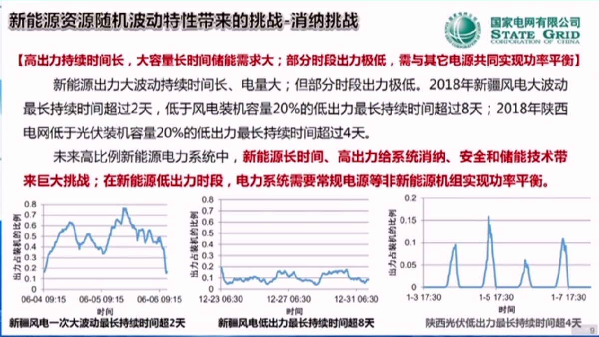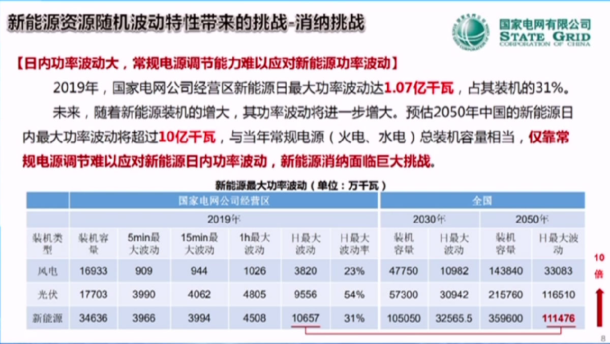 根据目前预测,随着新能源装机的增大,2050年中国新能源日内最大功率波动将超过10亿千瓦,与当年常规电源总装机容量相当,仅靠常规电源调节难以应对新能源日内功率波动。