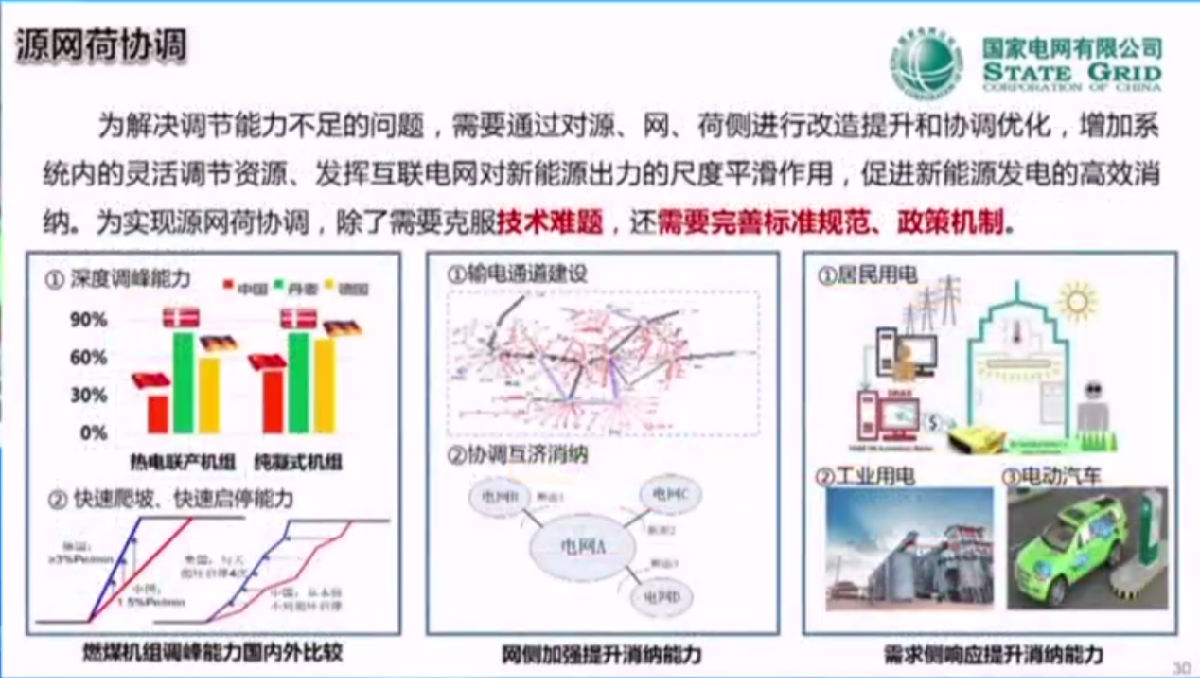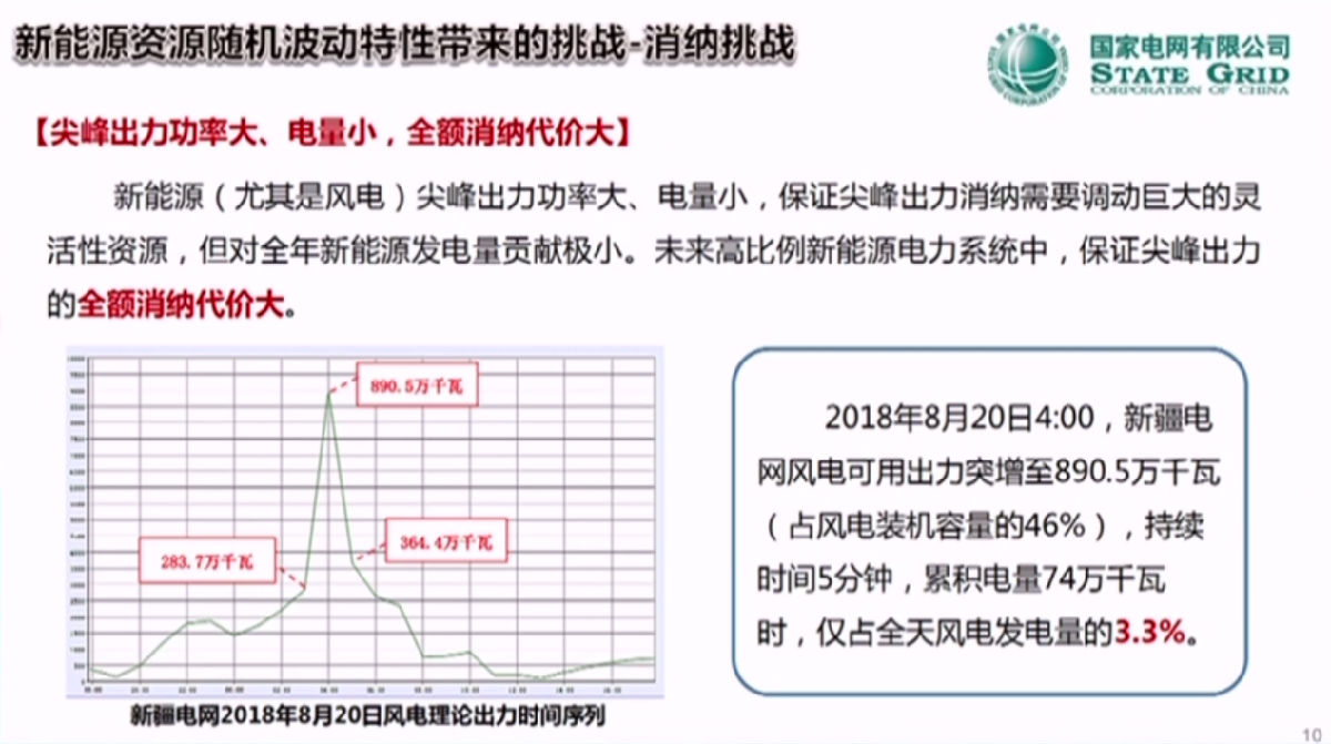 高比例新能源电量场景需要数倍于负荷的新能源装机容量,将面临多项挑战。郭剑波院士详细讲述了主要的三大挑战,高效消纳、安全运行和机制体制挑战。
