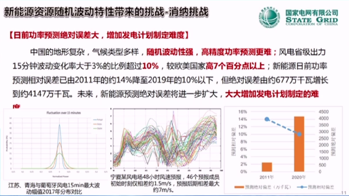 中国的地形复杂,气候类型多样,随机波动性强,高精度功率预测更难。未来,随着新能源装机规模的扩大,预测绝对误差将进一步扩大,大大增加发电计划制定的难度。