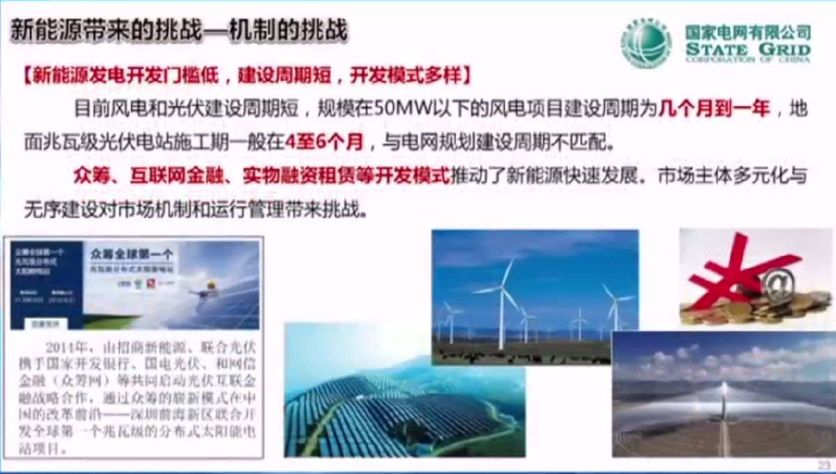 “随着新能源发电的技术进步、成本进一步降低,可以预期新能源必将迎来持续较长时间的高速发展期。”郭剑波院士表示,“另外,新能源绿色、低边际成本、高辅助服务需求对市场机制设计带来挑战,众筹、互联网金融、实物融资租赁等开发模式推动了新能源快速发展。”