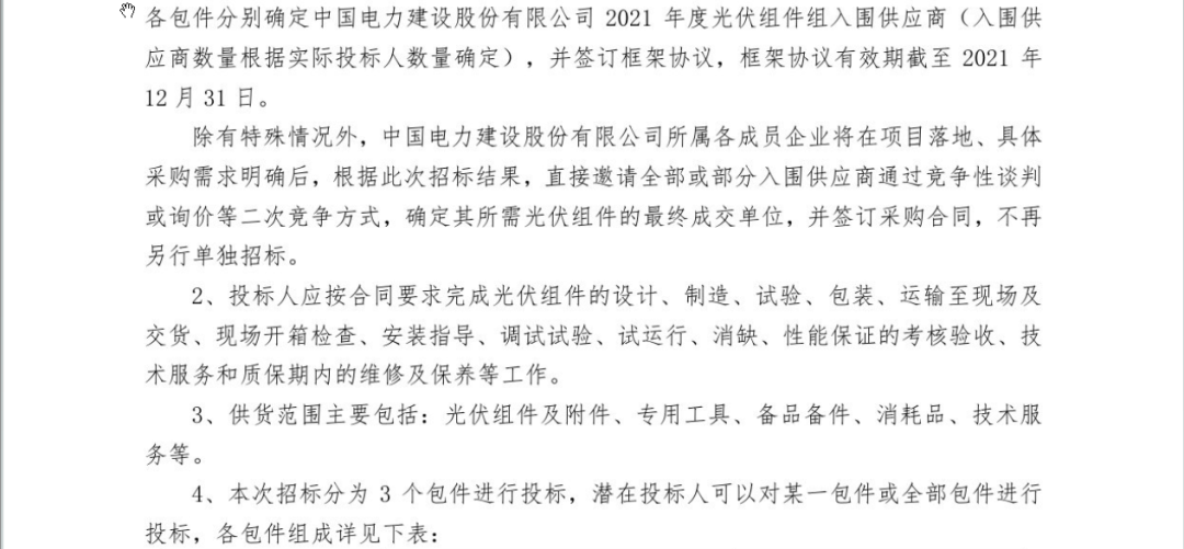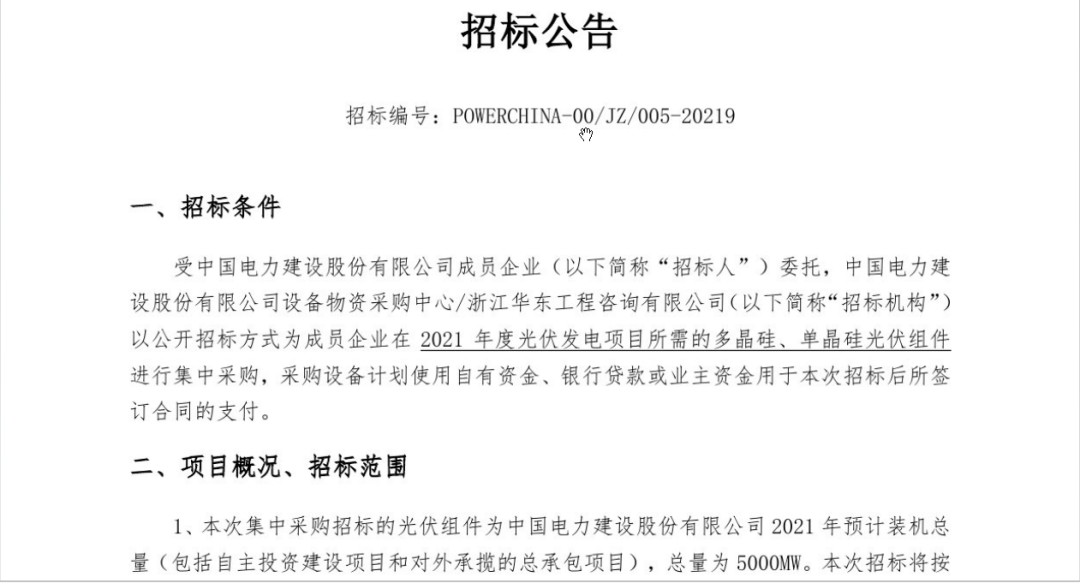 中国电建股份公司2021年度光伏组件集中采购项目招标公告
