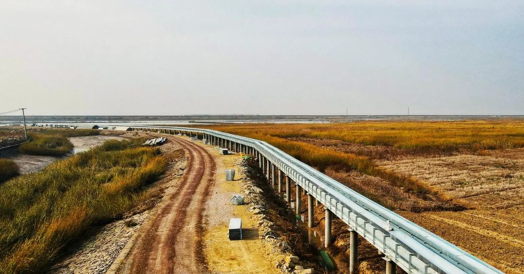 12月12日,光伏项目陆上栈桥全面贯通,按时完成了工程的重要节点目标,为年底并网发电奠定坚实的基础。