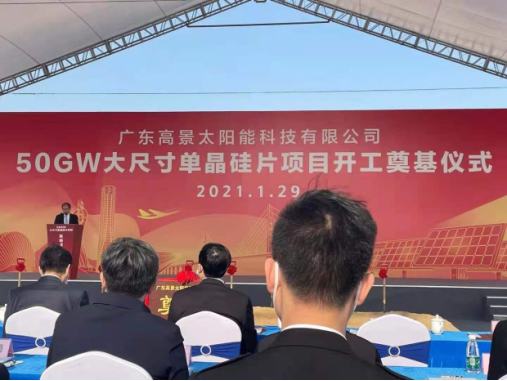 2021年1月29日,广东高景太阳能科技有限公司50GW大尺寸单晶硅片项目举行开工奠基仪式。