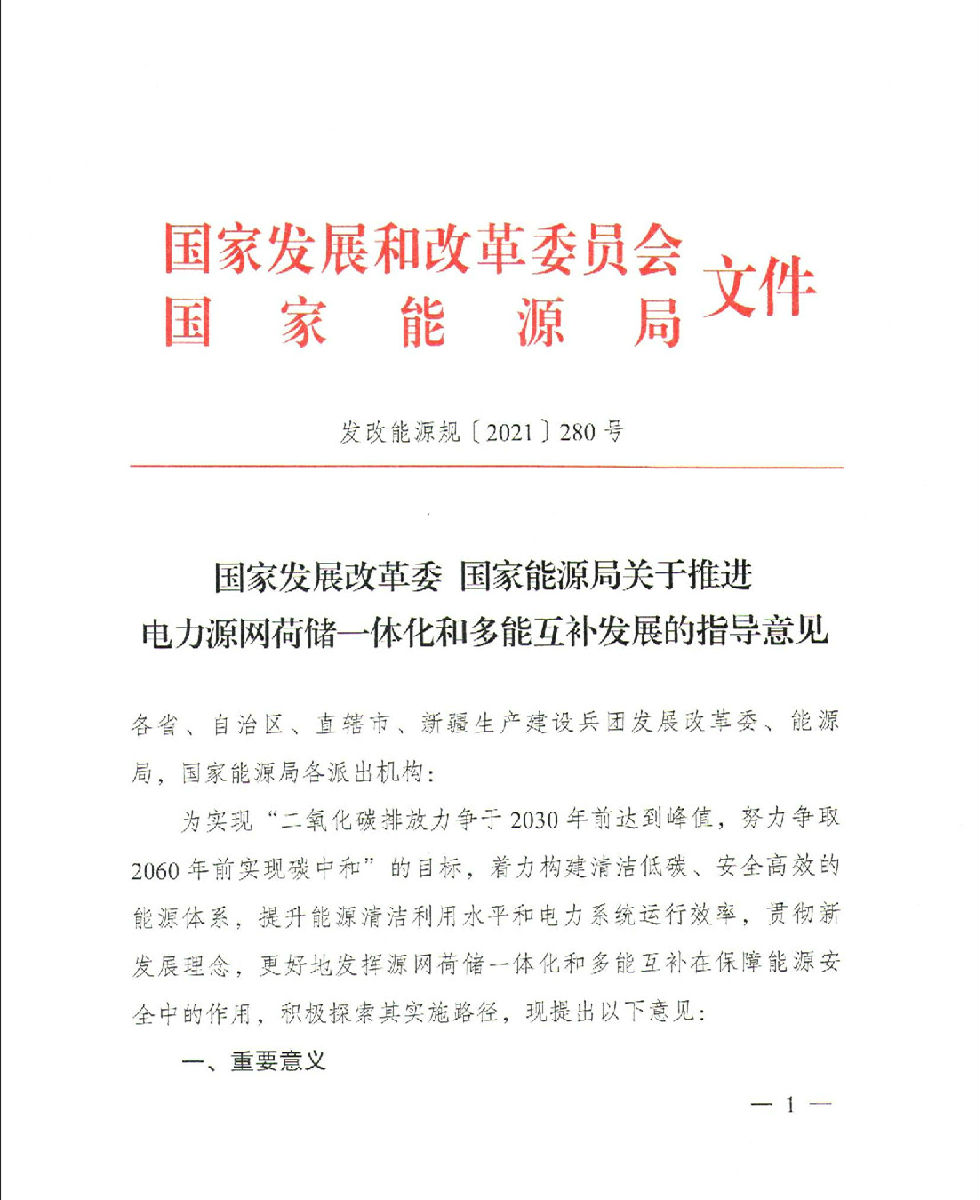 近日,国家发展改革委、国家能源局发布《关于推进电力源网荷储一体化和多能互补发展的指导意见》(文件附于正文后),有效期5年。
