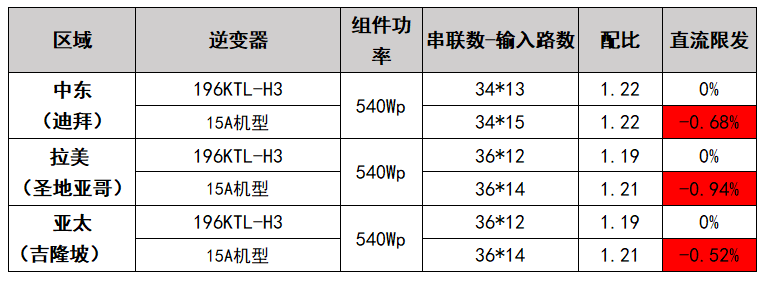 由以上仿真结果可知,20A机型(196KTL-H3)逆变器在各区域都不会产生任何限发,而另一种对比机型逆变器在不同区域均存在不同程度的限发损失。特别需要说明的是,以上仿真按照所有组件均匀辐照考虑,实际工作中各个MPPT的功率并不平均,因逆变器MPPT组串电流通道不够大导致的限发情况会更加严重,1%的发电损失等效CAPEX损失4分/W,为业主带来显著经济损失。