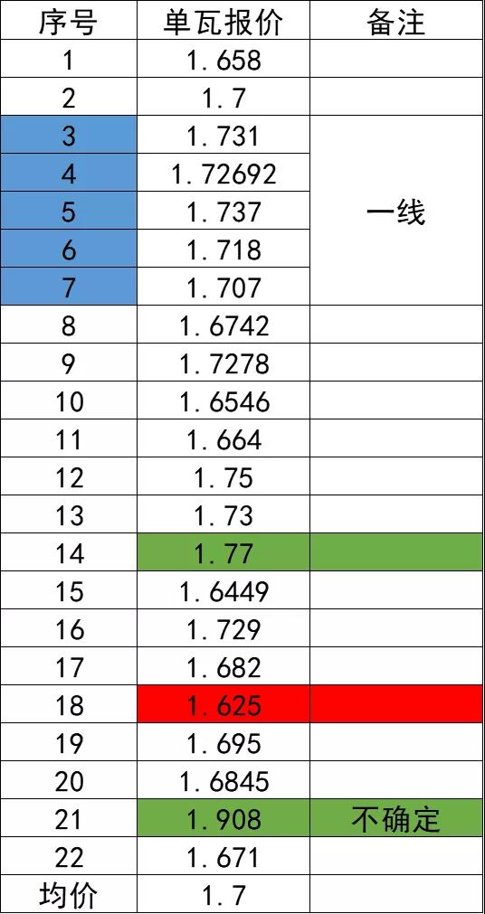 值得注意的是,在产业链价格持续上涨的周期内,大部分二三线厂家的价格普遍低于一线,在此次投标中,最低价1.625元/瓦来自于一家二线组件企业,大部分低于1.7元/瓦的报价也均来自于二三线厂家,不过从整个价格区间来看的话,各家的报价已经相对集中。