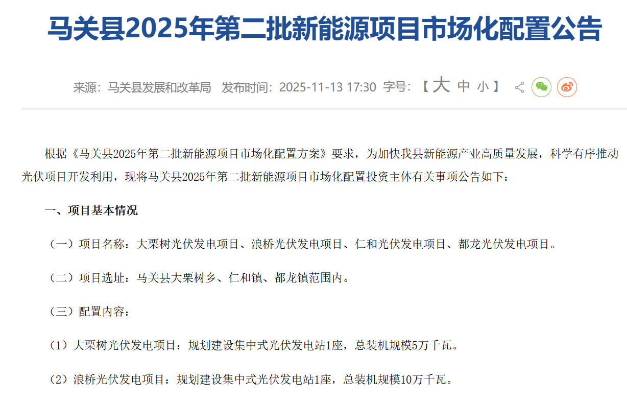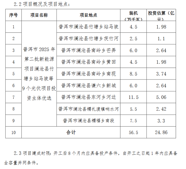 光伏项目2026年2月底前全面开工建设;风电项目2026年3月底前具备核准条件,2026年7月底前全面开工建设。