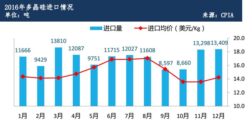 规模:2016年,我国多晶硅产量约19.4万吨,同比增长17.6%。全年太阳能级多晶硅进口量约13.6万吨(含硅锭);