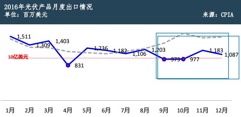 3. 9月份以来受市场需求疲软影响,出口量较2015年同期相比明显减小,其中一个原因可能是受到美国大选的影响,出口至美国的光伏产品9月起骤减;