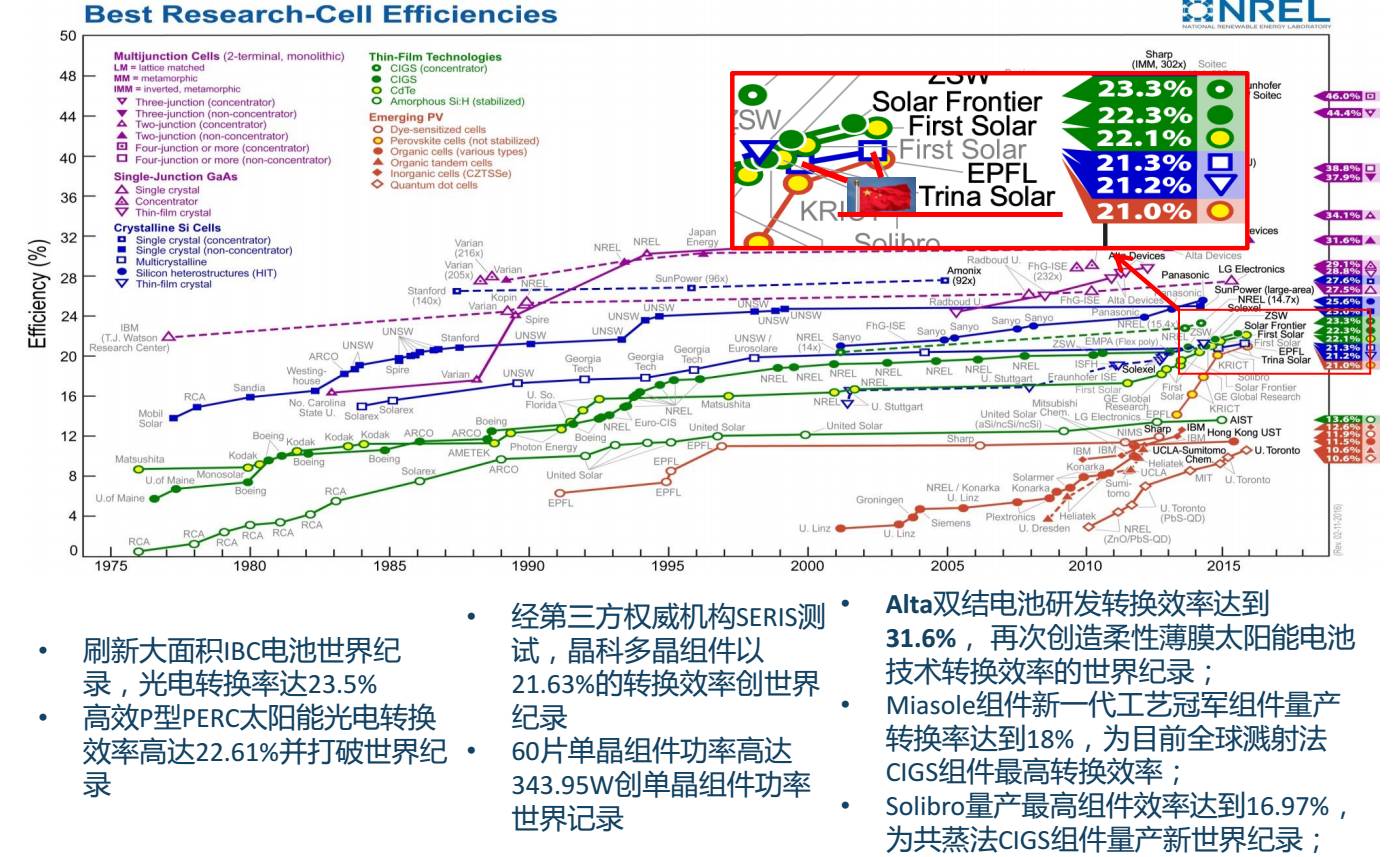 技术:生产技术不断进步,PERC、黑硅等技术实现规模化生产,单多晶效率分别达到20.5%和19%;
