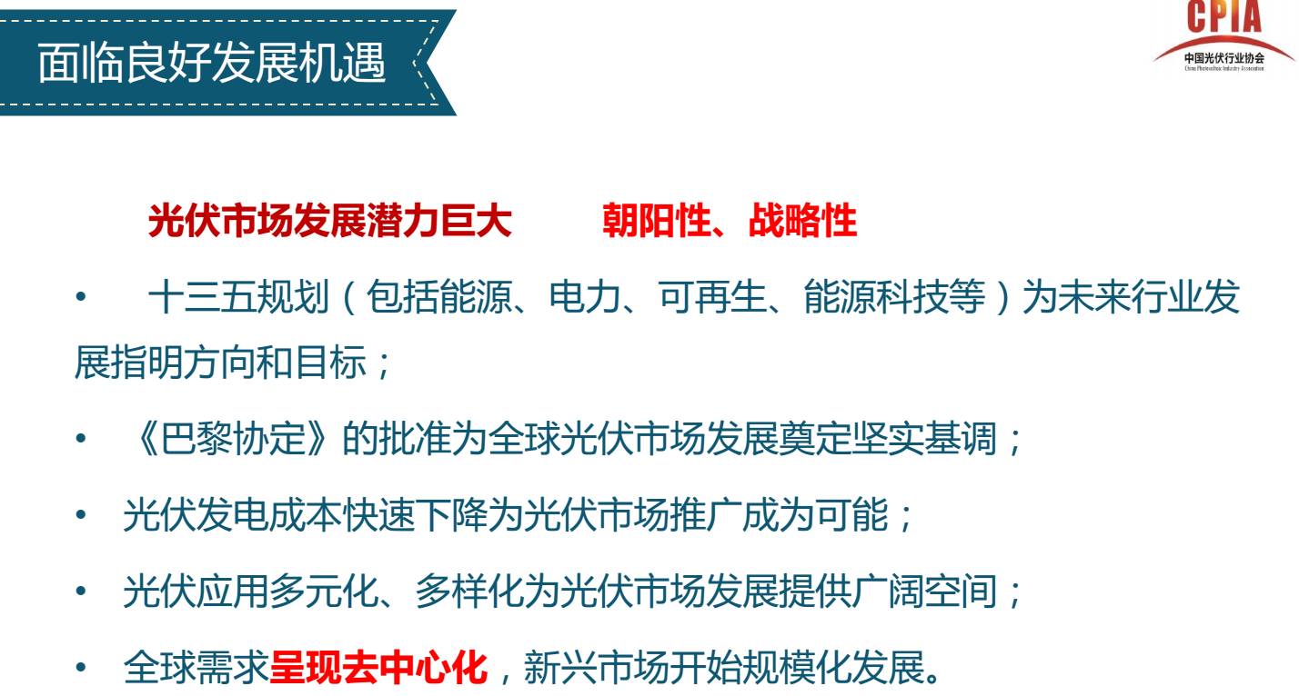 2017年2月16日,中国光伏行业协会秘书长王勃华详细介绍了2016年中国光伏产业的发展状况,并对2017年的发展趋势进行了预判。以下为报告的详细内容: