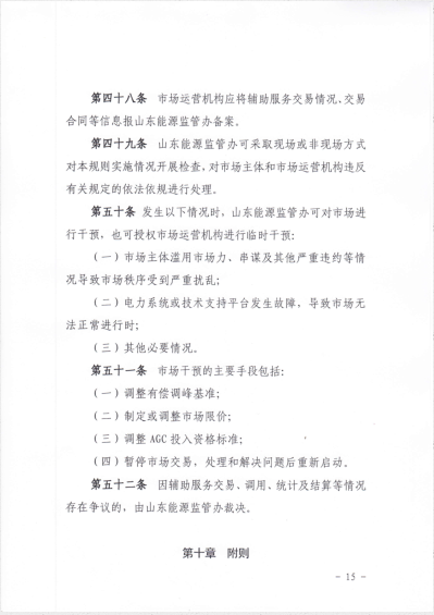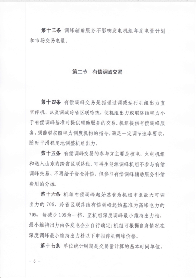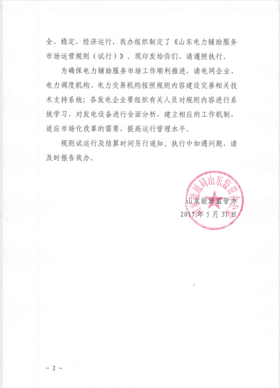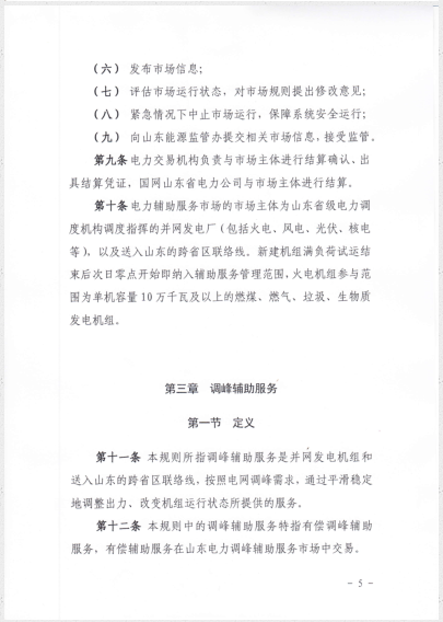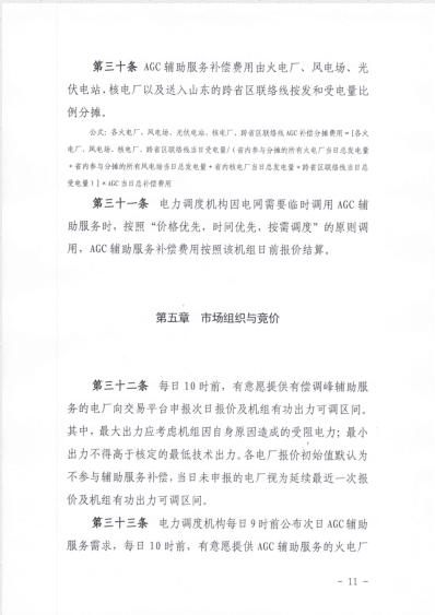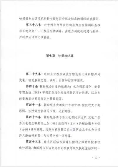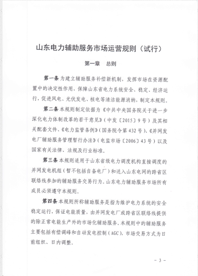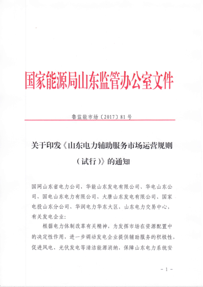 为了解决山东电网调峰调频问题,6月5日,国家能源局山东监管办公室印发了《山东电力辅助服务市场运营规则(试行)》的通知。山东电力辅助服务市场将山东省级电力调度机构直接调度的并网发电机组(暂不包括自备电厂)和送入山东电网的跨省区联络线纳入辅助服务市场范围,交易品种主要包括有偿调峰和自动发电控制(AGC)。有偿调峰交易采用“阶梯式”报价方式,分七档报价,交易方式为日前组织、按15分钟出清;AGC辅助服务交易为日前组织、按日出清。补偿费用按日统计发布,按月结算。