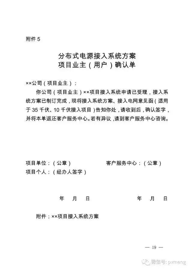 12. 地市或县级公司营销部(客户服务中心)负责将380伏接入项目的接入系统方案确认单(附件5),或35千伏、10千伏接入项目的接入系统方案确认单(附件5)、接入电网意见函(附件6)告知项目业主,工作时限为3个工作日。负责受理并安排接入系统方案咨询。