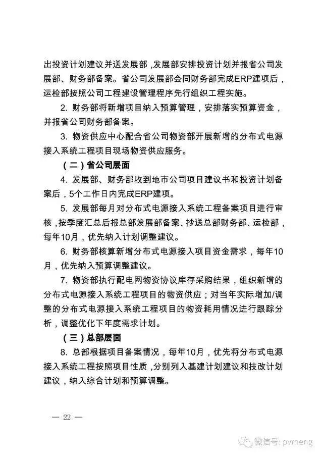 14. 35千伏、10千伏接入项目,项目业主确认接入系统方案后,地市公司发展部负责将接入系统方案确认单、接入电网意见函,及时抄送地市公司财务部、运检部、营销部、调控中心、信通公司,并报省公司发展部备案。项目业主根据接入电网意见函开展项目核准(或备案)和工程设计等工作。
