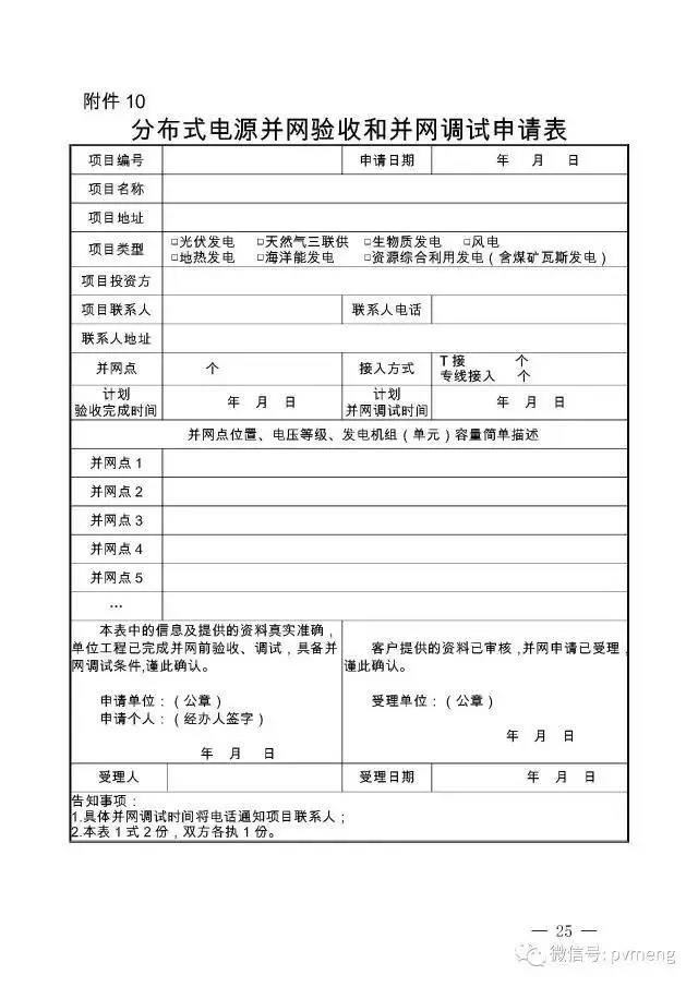 19. 地市或县级公司营销部(客户服务中心)负责受理项目业主并网验收及并网调试申请,协助项目业主填写并网验收及并网调试申请表(附件10),接收相关资料(附件11)。