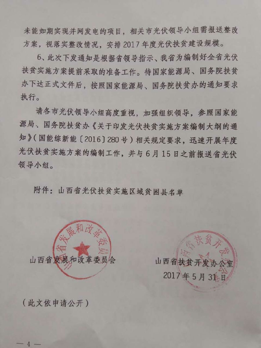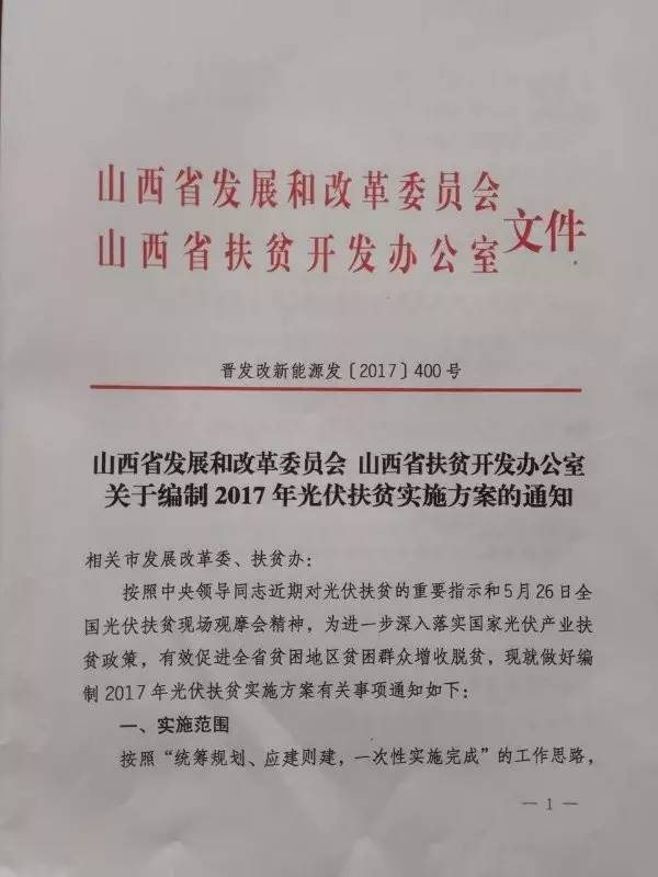 以下为山西关于编制2017年光伏扶贫实施方案的通知: