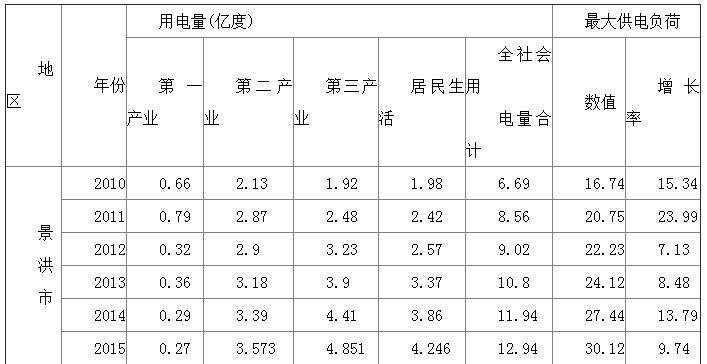 表3 西双版纳州历年用电量统计表(单位:亿度,万千瓦)
