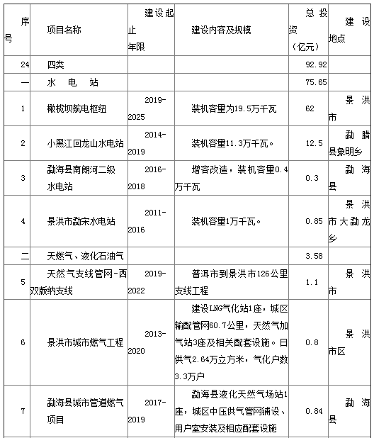 表5 西双版纳州清洁能源发展规划(2016-2020年)项目表
