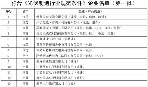 公示拟公告的符合《光伏制造行业规范条件》企业名单(第六批)