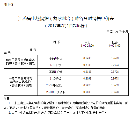 3. 江苏省电热锅炉(蓄冰制冷)峰谷分时销售电价表