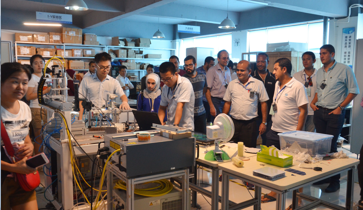 陕西众森电能科技有限公司领导对联合国培训班学员的到来表示了热烈地欢迎,并与来宾分享和交流了中国光伏市场的发展趋势以及双方今后的潜在合作方向,随后介绍了公司发展历程、荣誉、成就等,并带领学员参观了陕西众森与德国、美国合作的组件测试实验中心、屋顶电站、研发实验基地、生产车间和最新推出的“直射式长脉冲太阳模拟器、高像素El-检测仪、高效电池片全自动分选机等。