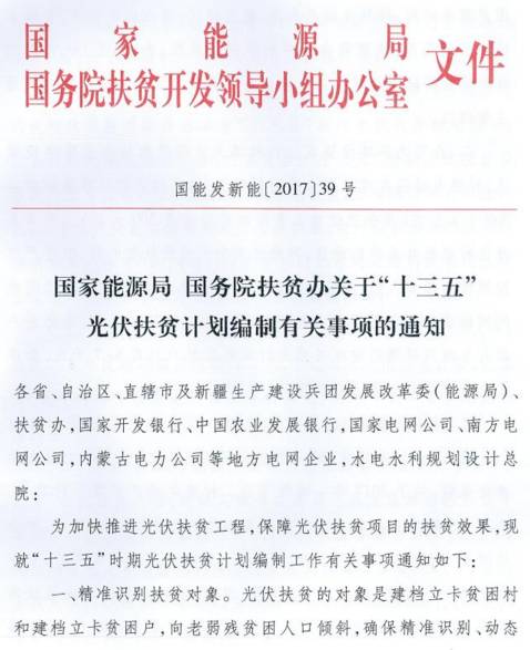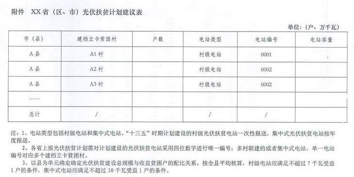 8月1日,国家能源局、国务院扶贫办联合下发《“十三五”光伏扶贫计划编制有关事项的通知》,通知要求合理选择建设模式,以村级光伏扶贫电站为主要建设模式,单个村级电站容量控制在300千瓦左右(具备接入条件的可放大至500千瓦),集中式光伏扶贫电站要严格按照政府投资入股、按股分成的资产收益模式建设,限电省份不安排集中式光伏扶贫电站。