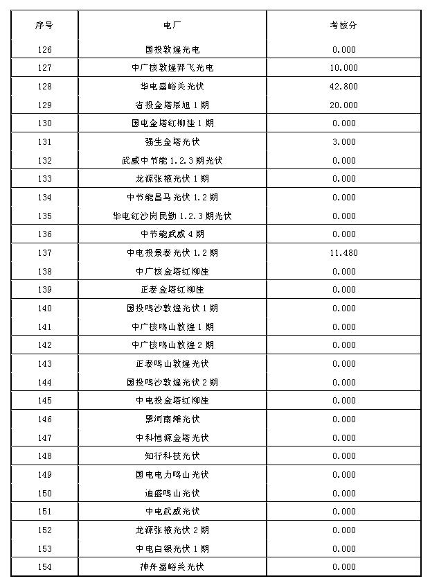 2017年7月份甘肃电网“两个细则”考核工作已经完成,现对各电厂考核分数(不含补偿及分摊)结果进行预公告,请各发电厂认真核对考核结果,如有疑问,请于8月15日前与甘肃能源监管办或甘肃省电力公司沟通联系。