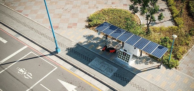 近日,Gogoro正式启用了他们的首座太阳能示范换电站。该项目位于台湾新北市,是与台湾新北市政府合作的首座太阳能电池交换站。目前已经进入了运营阶段。