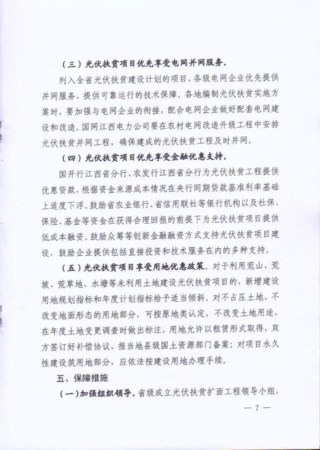 7月25日,江西省发改委印发了《关于实施光伏扶贫扩面工程的指导意见(征求建议稿)》意见的函(以下简称“意见”)。为继续在江西省实施光伏扶贫扩面工程,“意见”中给出了五项政策支持光伏扶贫:1、光伏扶贫项目优先列入全省光伏建设计划;2、光伏扶贫项目优先享受财政度电补贴政策;3、光伏扶贫项目优先享受电网并网服务;4、光伏扶贫项目优先享受金融优惠支持;5、光伏扶贫项目享受用地优惠政策!