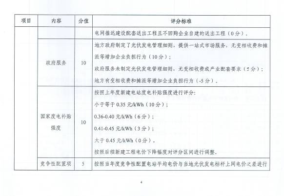 竞争类指标则由土地资源指标、地方政府服务指标、电网企业服务指标、国家度电补贴强度指标、竞争性配置项目平均度电补贴降幅指标、地方政府补贴力度指标组成。其中土地资源指标占比最大。