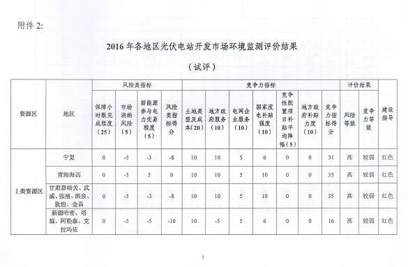 此外,国家能源局还在该文件中发布了2016年监测评价结果,新疆、甘肃、青海海西、宁夏等均被列为红色投资示警区域。