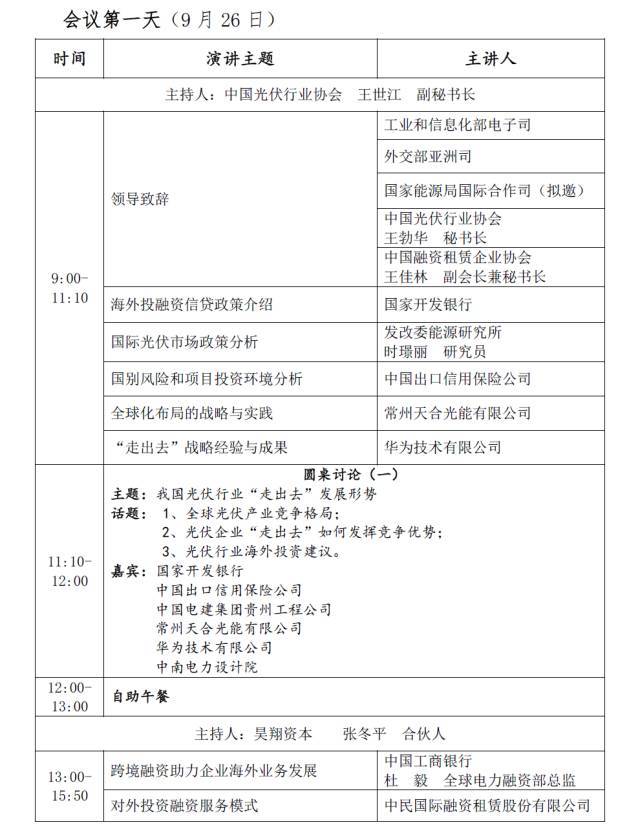在此背景下,为帮助企业了解海外投资环境,更好的协助企业开辟海外光伏市场。中国光伏行业协会联合中国融资租赁企业协会拟于2017年9月26-27日在北京中土大厦举办2017年中国光伏海外投资发展论坛,邀请行业主管部门、研究机构、金融保险机构、海外电力投资企业、光伏企业的领导和专家,一起就海外光伏市场发展形势、光伏发电项目开发及投融资情况等问题进行分析。