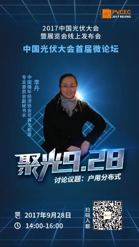 林佳荔:感谢刘译阳副秘书长的讲话。这次展会将是风能与光伏龙头企业与创新技术的“大阅兵”,届时将会吸引全球可再生能源人士的目光。下面,请本次微论坛的主办方之一——中国循环经济协会可再生能源专业委员会副秘书长李丹对PVCEC2017会议做详细介绍。有请李丹副秘书长。
