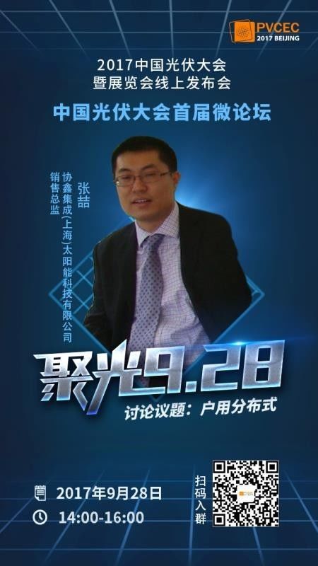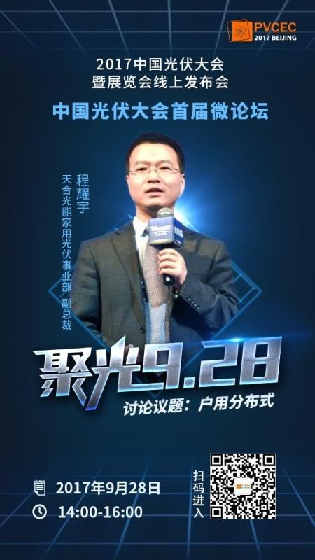 9月28日下午,作为“2017中国光伏大会暨展览会”预热活动的“2017中国光伏大会暨展览会线上发布会 中国光伏大会首届微论坛”胜利召开,此次微论坛吸引了8000余名听众线上参与。