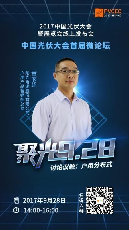 谢谢李副秘书长,尊敬的各位朋友,大家下午好,我是来自阳光能源股份有限公司户用产品营销部黄家超,阳光能源是一家专注于太阳能、风能、储能等新能源电源设备的研发、生产、销售和服务的国家重点高新技术企业,主要产品有光伏逆变器、风机变流器、电动车电机控制器等,其中光伏逆变器销售连续多年来位居国内市场第一,2016年逆变器出货量登顶全球第一。谢谢大家!